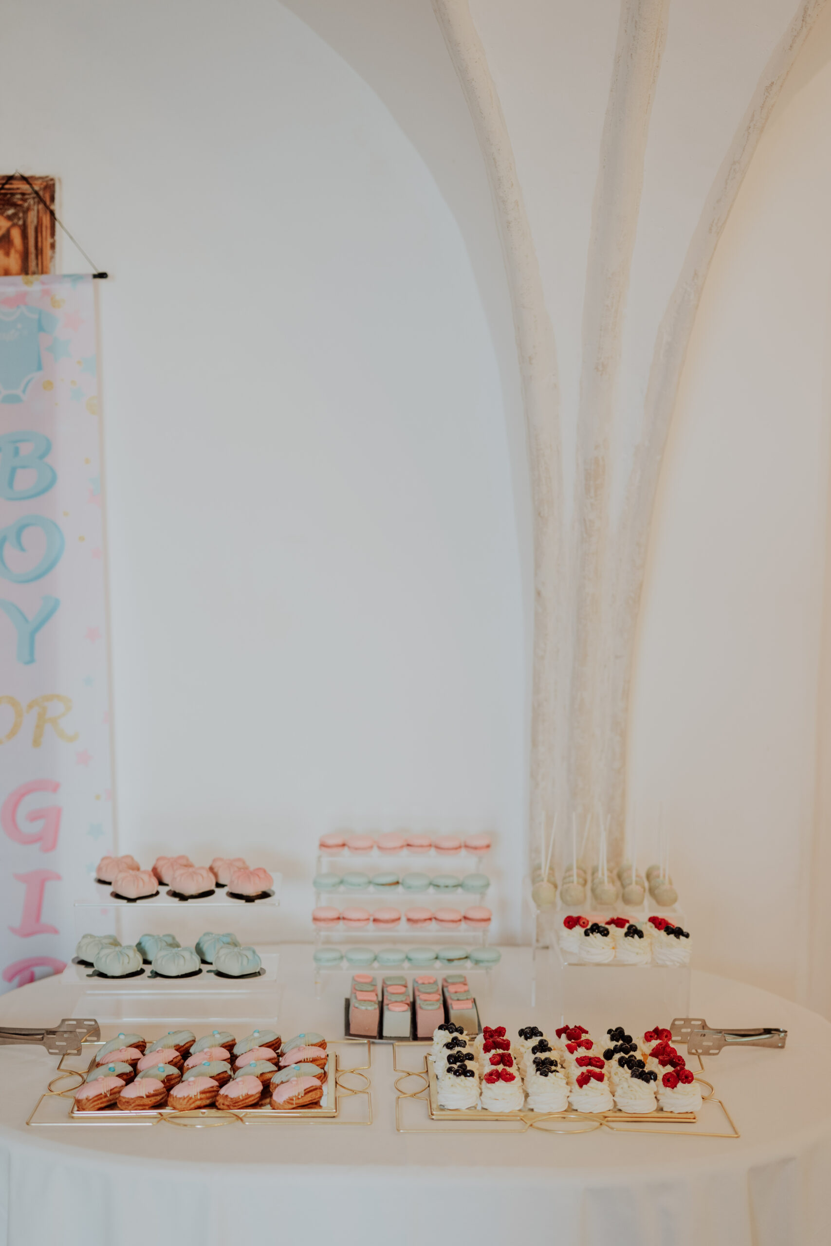 Fiecare detaliu al evenimentului a fost gândit pentru a transmite emoție, de la decorurile delicate, candy bar-ul ales în culori tematice și până la momentul mult așteptat al dezvăluirii.
